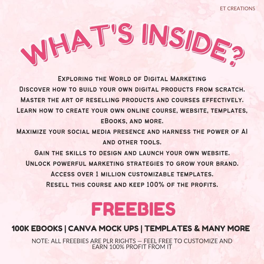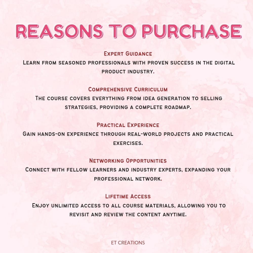 So if you're ready to start your digital product business, don't worry—ET Creations has got you covered! Seize the opportunity and grab these affordable products now!